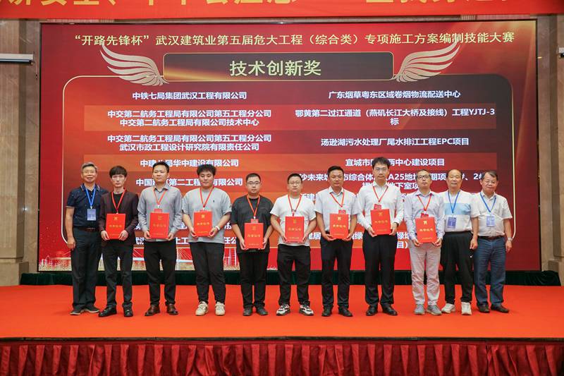 2025年6月25日,“开路先锋杯”武汉建筑业第五届危大工程(综合类)专项施工方案编制技能大赛圆满落幕。在此次大赛中,我司6项目获奖,其中技术创新奖1项,优秀成果奖5项,我司荣获优秀组织奖。